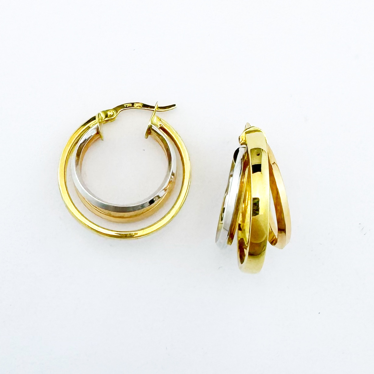 Avec ces boucles d'oreilles créoles en Or 18 carats, véritables chefs-d'œuvre de finesse et de modernité. Inspirées de l’élégance intemporelle des grandes icônes de la mode, elles marient l'authenticité de l'or jaune à la pureté de l'or blanc et l'or rose, créant un contraste lumineux unique.