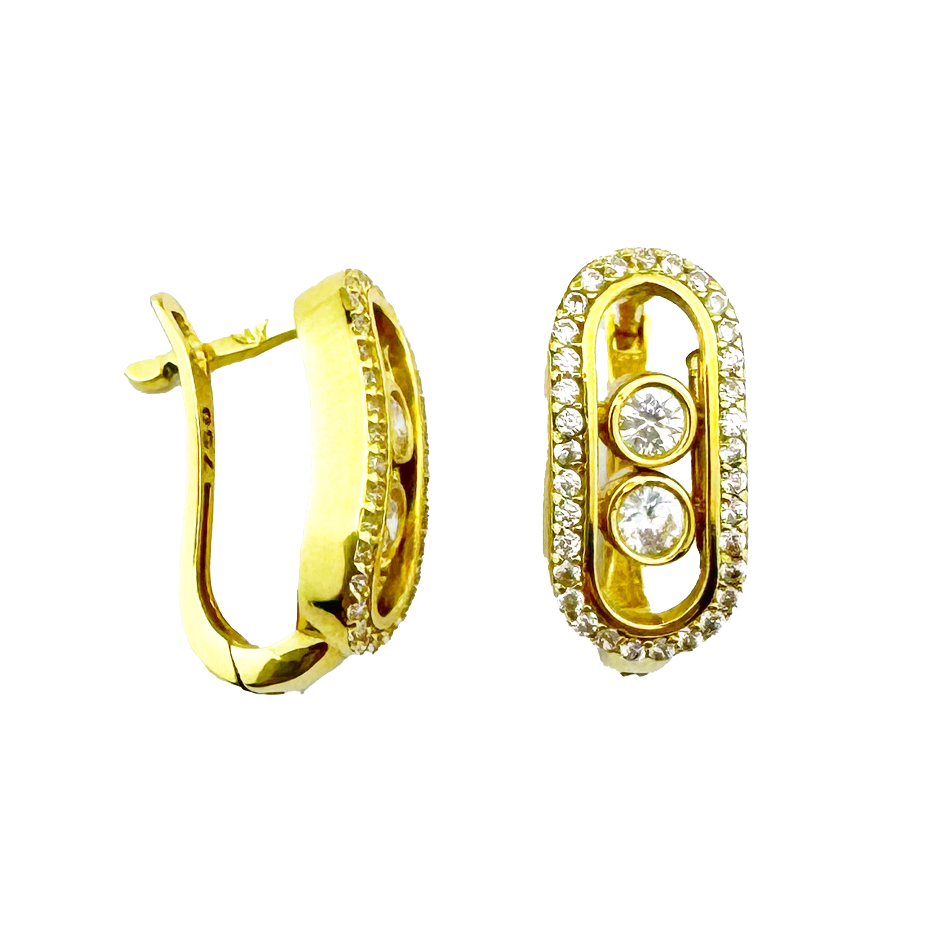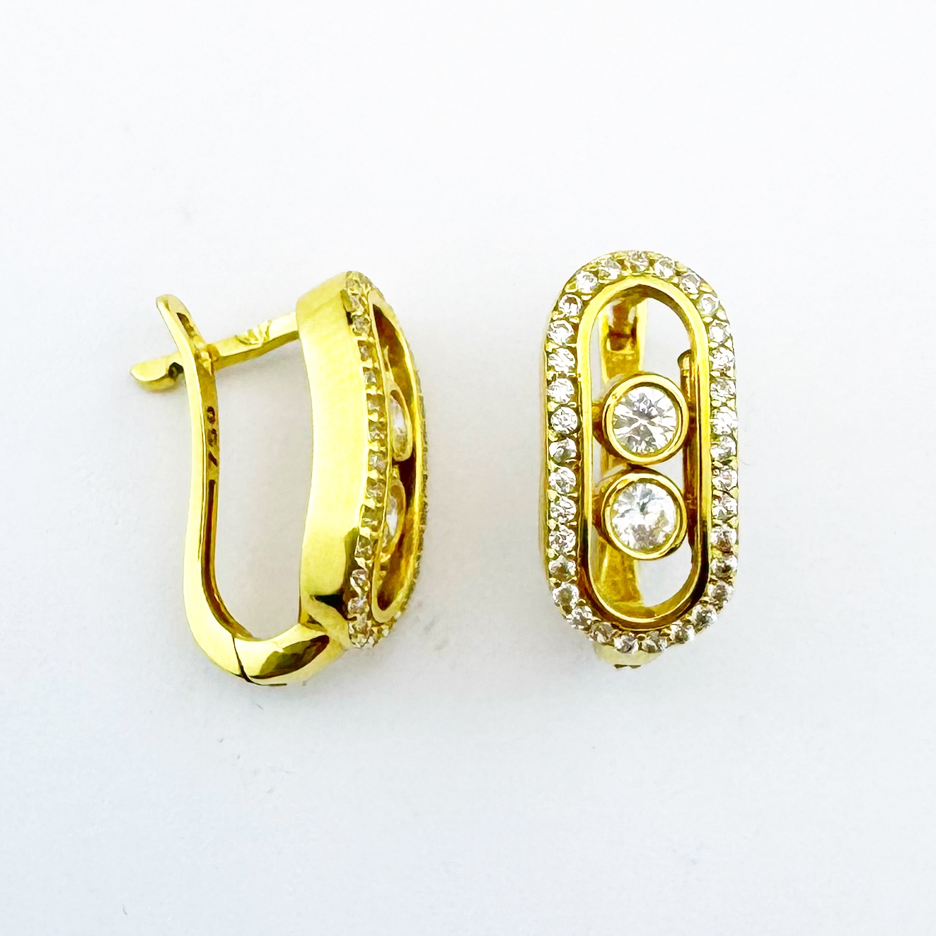 avec ces boucles d'oreilles créoles en or jaune 18 carats fin, magnifiquement ornées de cristaux étincelants. Leur design ovale audacieux, rehaussé de deux pierres centrales scintillantes, Les deux pierres au cœur du design évoquent l'union de deux âmes, l'équilibre entre rêve et réalité, passé et futur. Ces créoles deviennent alors un véritable porte-bonheur personnel.
