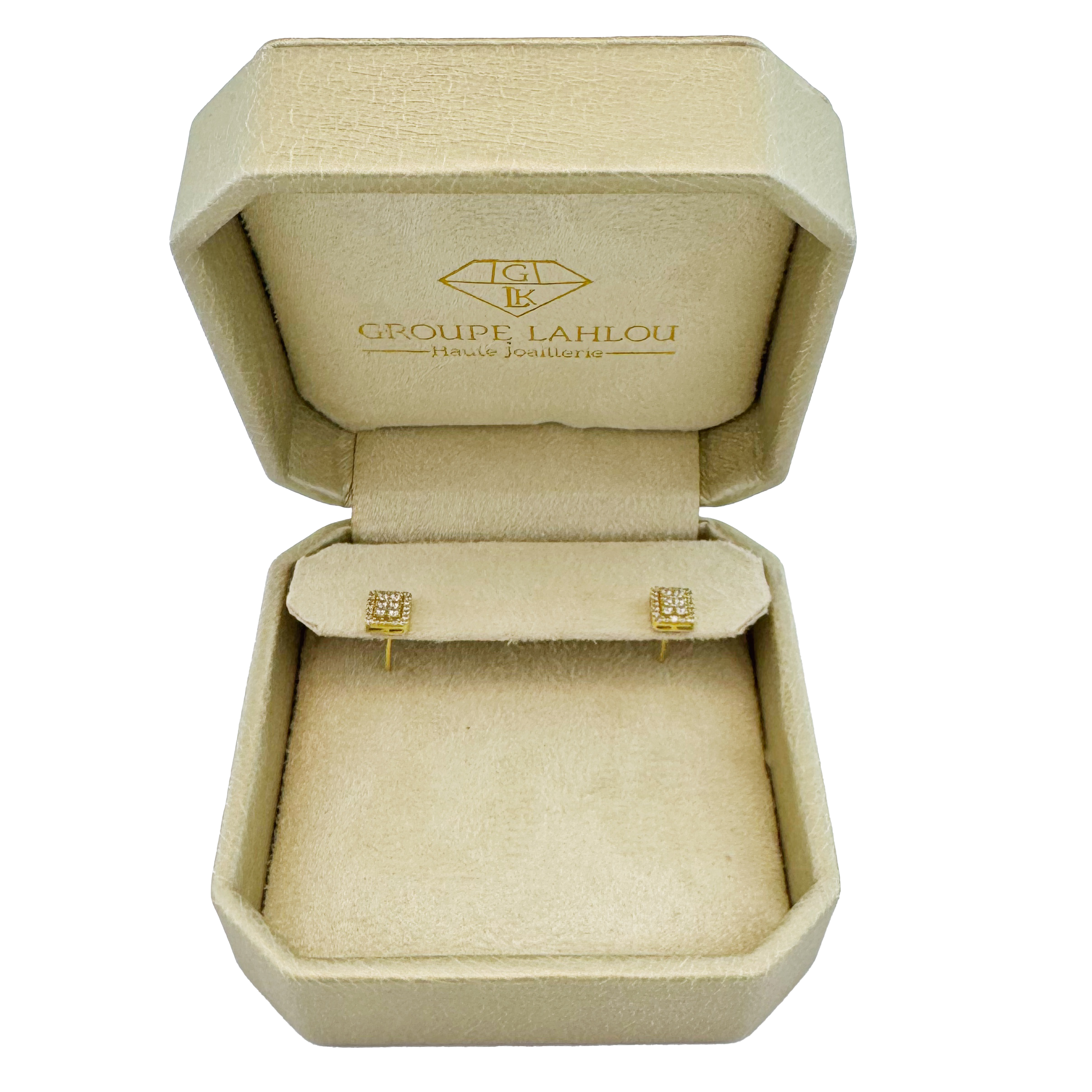 Découvrez l'audace délicate de ces boucles d'oreilles carrées en Or jaune 18 carats, véritables œuvres d'art miniature, où chaque zircon vient refléter l’éclat intérieur de celle qui les porte. Inspiré par l'héritage architectural marocain, ce design carré symbolise la stabilité, la force et la perfection intemporelle.
