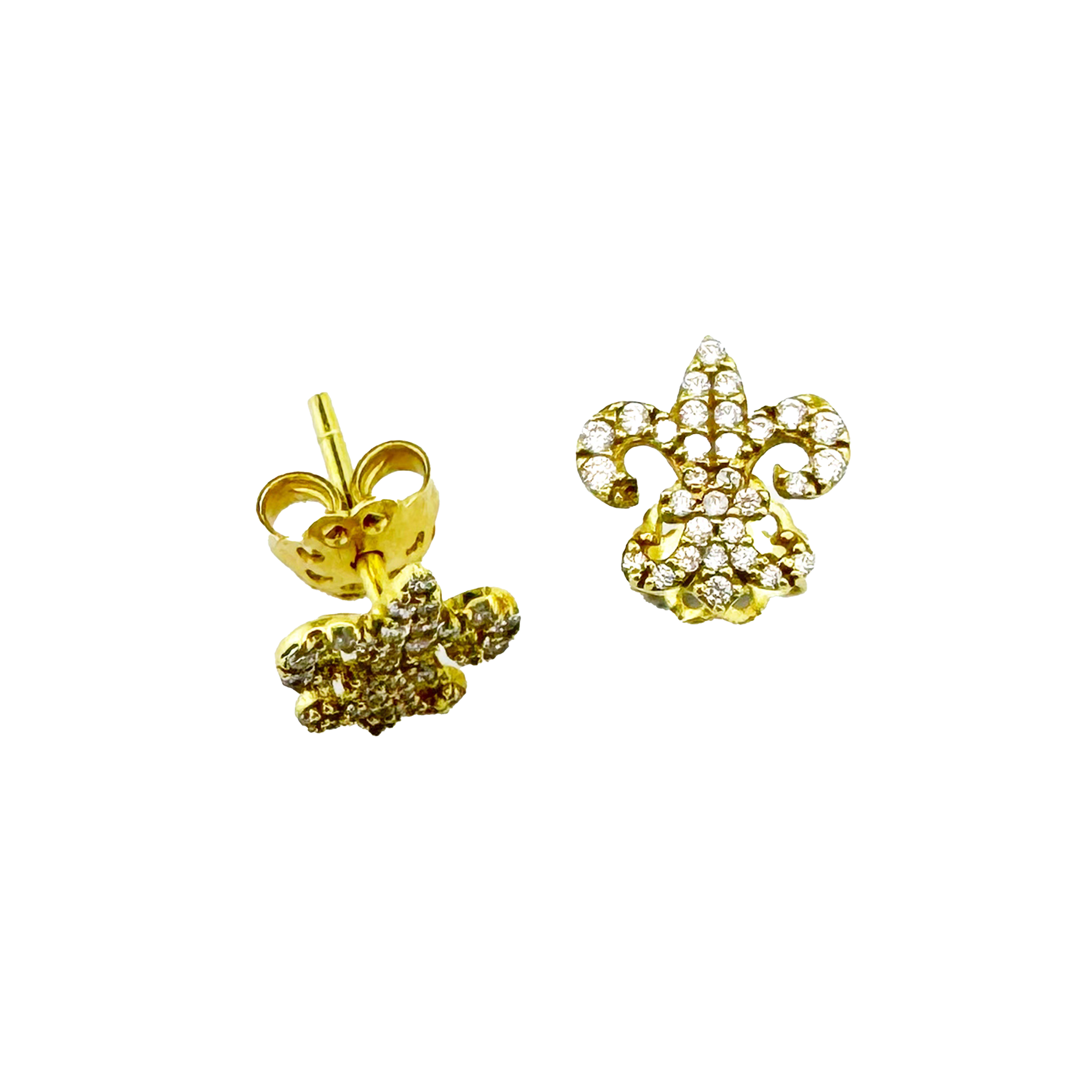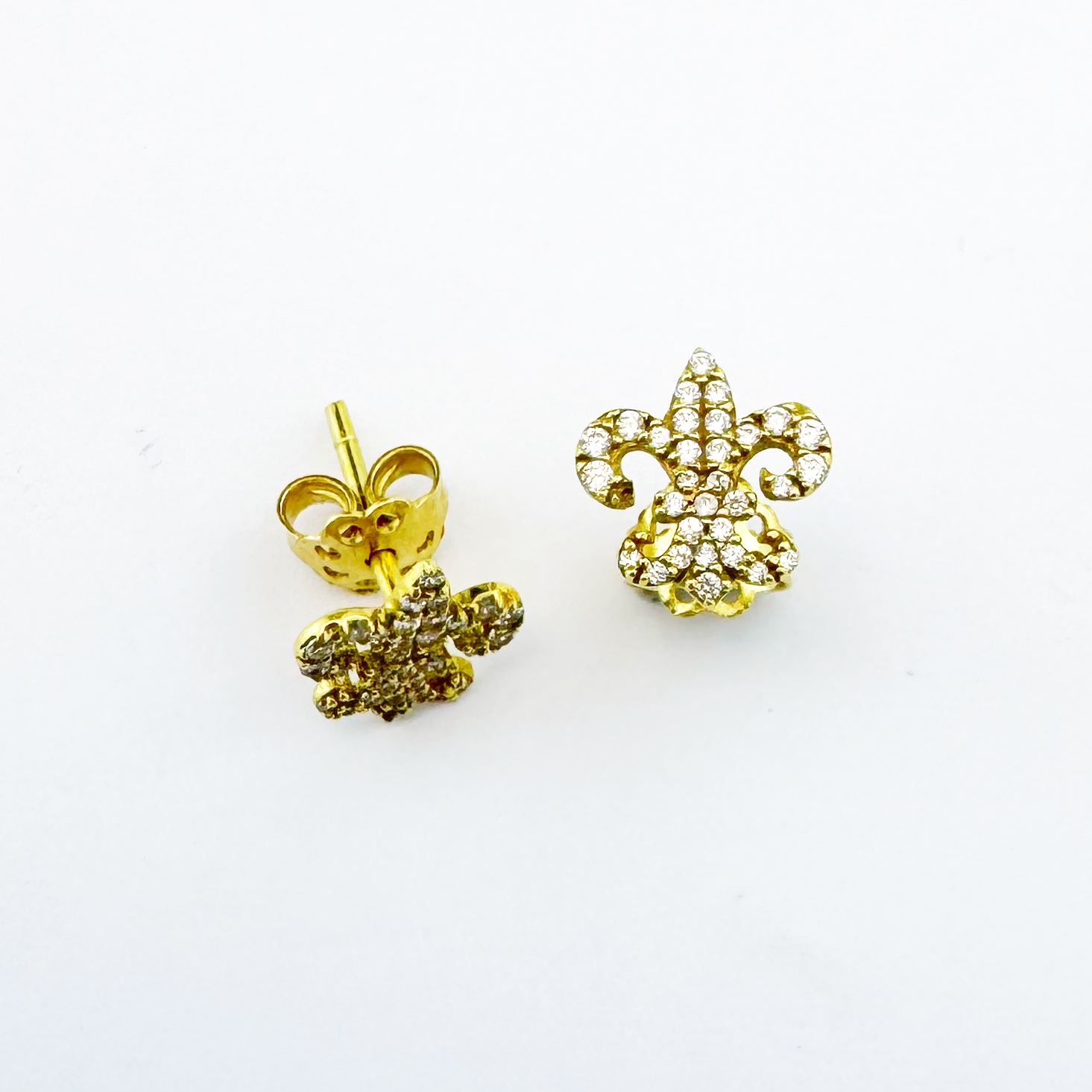 Affirmez votre élégance intemporelle avec ces boucles d’oreilles puces en or jaune 18 carats, finement conçues en forme de fleur de lys, symbole de royauté et de raffinement.