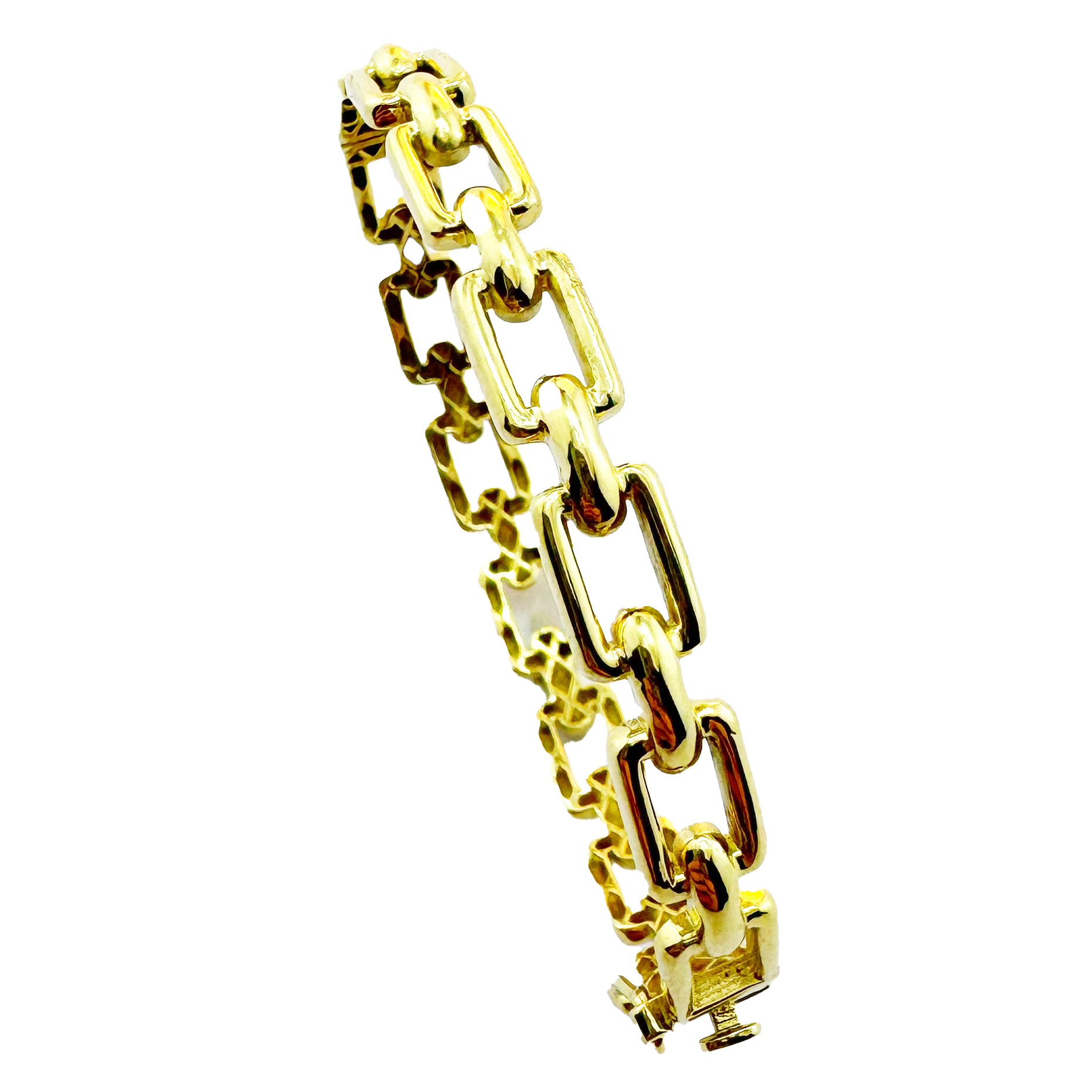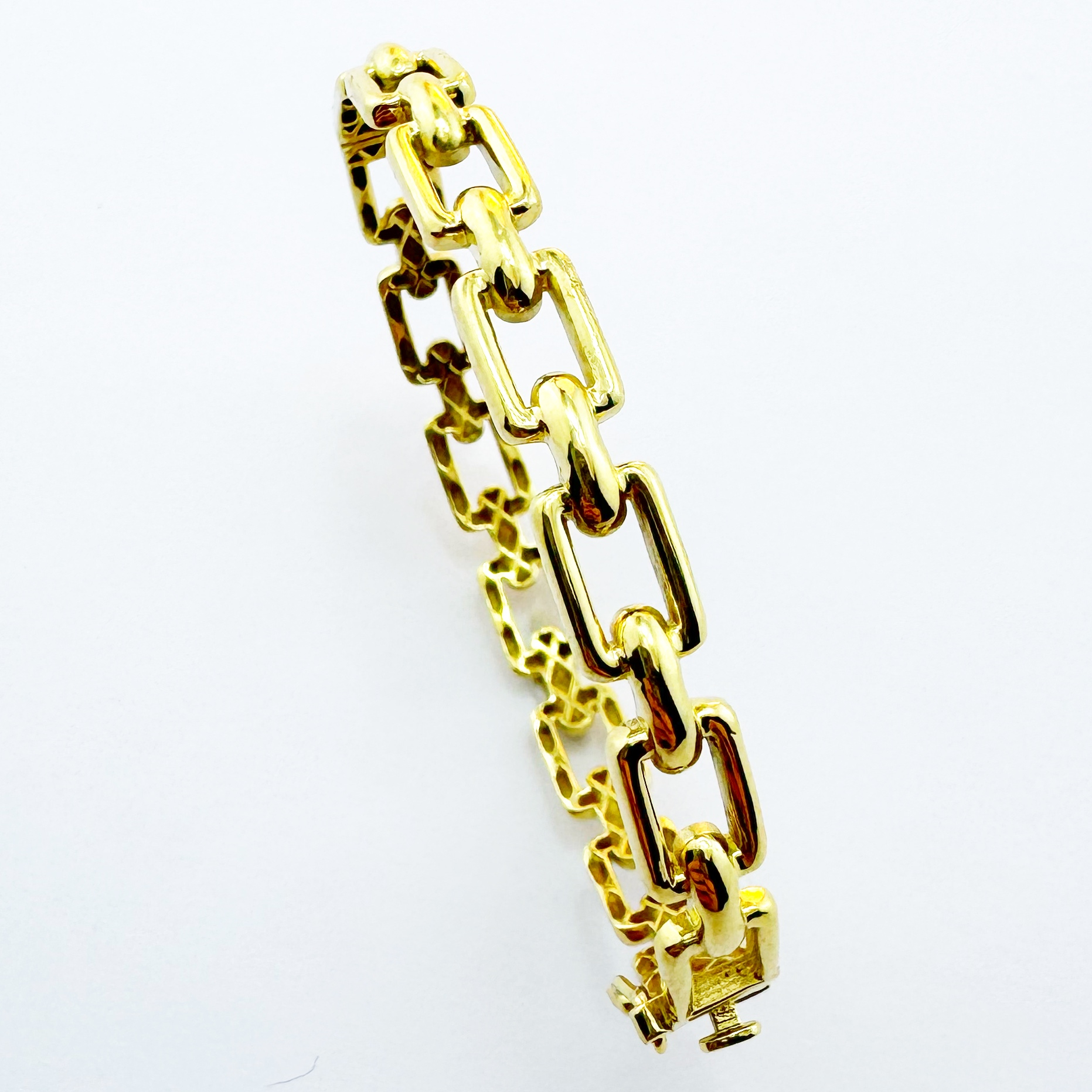 Cet élégant bracelet grande chaine en Or 18 carats, offrant un équilibre parfait entre durabilité et sophistication. La finition en or poli 750/1000 lui confère un attrait intemporel, ce qui permet de l'utiliser aussi bien pour des tenues décontractées que pour des occasions formelles. Son design classique garantit la polyvalence, complétant toute tenue sans effort. Idéal pour offrir ou ajouter à votre collection personnelle, ce bracelet est une pièce de joaillerie fine éblouissante de notre maison GROUPE LAHLOU GLK. Un accessoire parfait pour ceux qui apprécient le luxe discret.