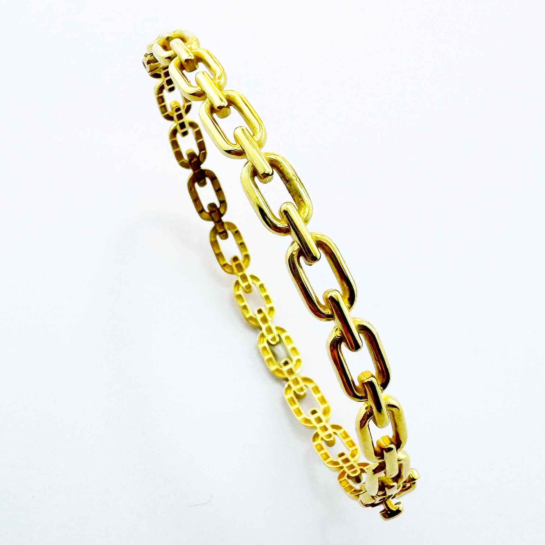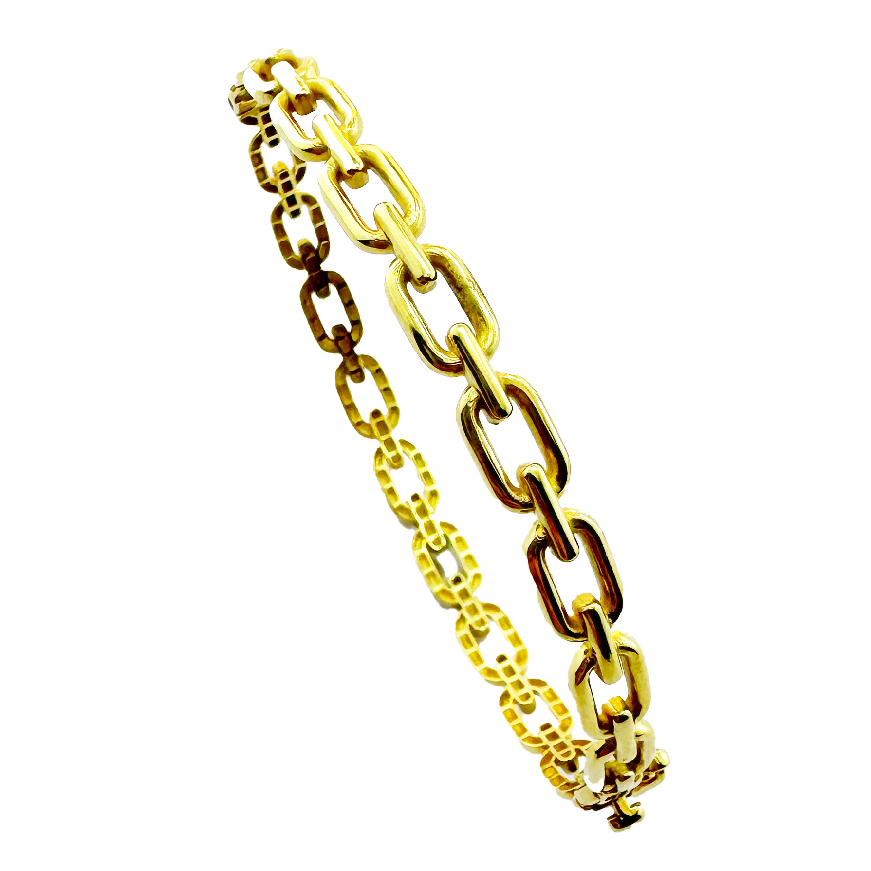 Bracelet moderne en Or jaune 18 carats grande chaine est incontournable facile à porter, ce bracelet grande chaîne se pose en douceur et sans effort sur votre poignet. Vous n'aurez plus jamais envie ni besoin de l'enlever