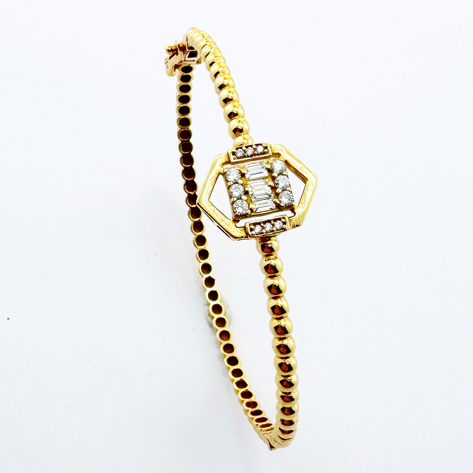 Ce bracelet raffiné en or 18K, orné d’un sublime motif serti de pierres scintillantes, allie finesse et luxe. Son design délicat et moderne en fait un bijou intemporel à porter en toute occasion.