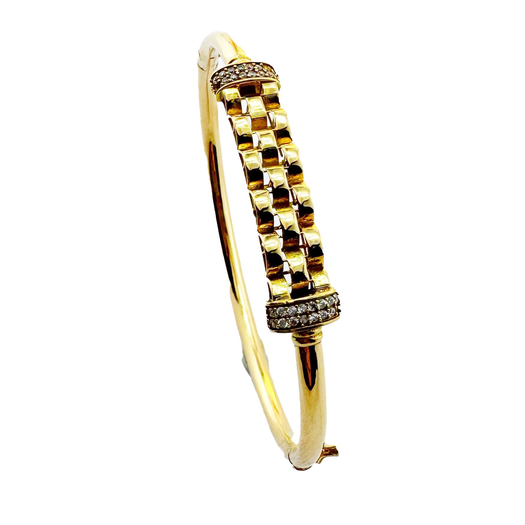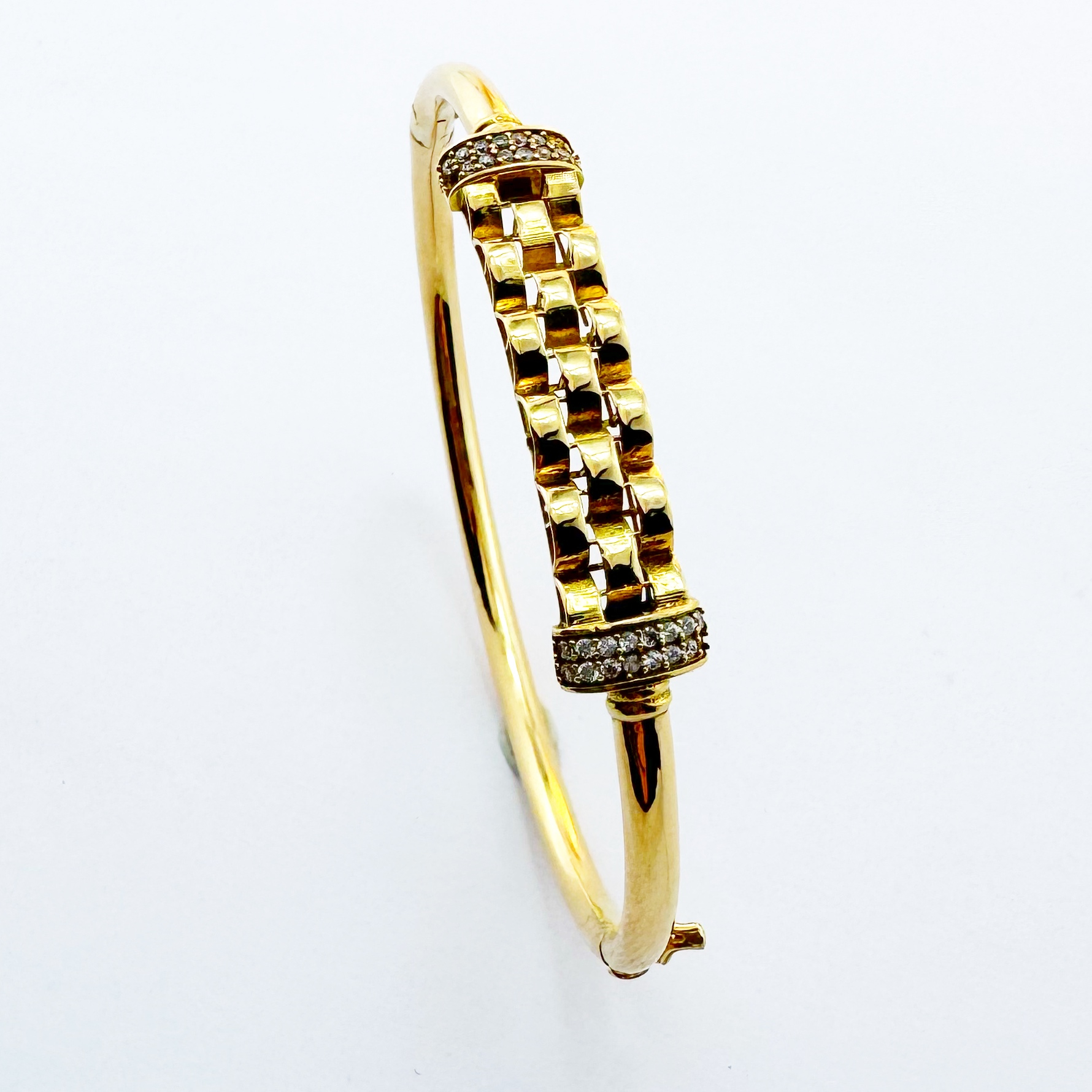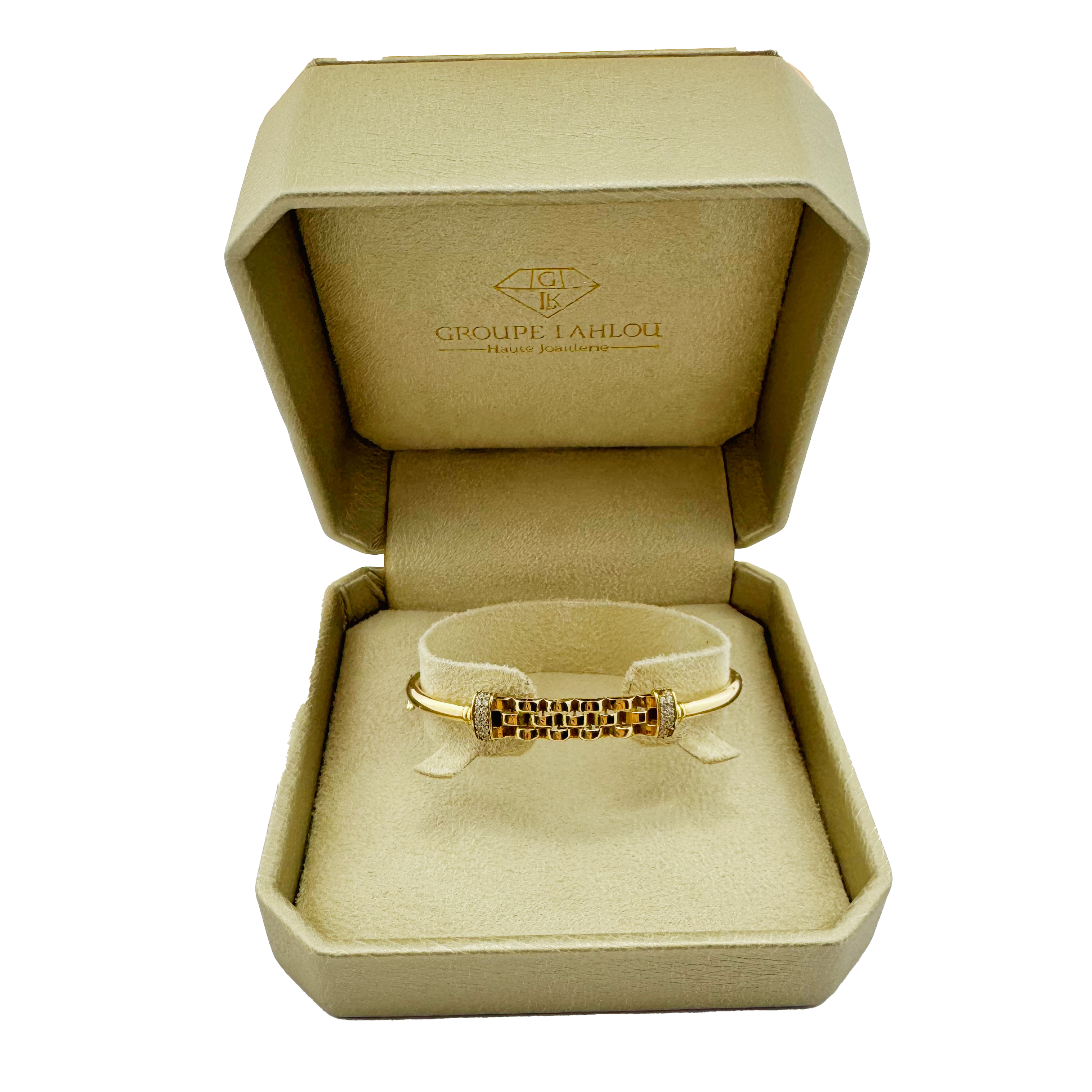Découvrez notre somptueux bracelet en or jaune 18 carats, alliant sophistication et charme classique. Avec son design captivant en motif tissé, ce bijou attire le regard tout en étant d’une grande versatilité. Les détails délicats en pierres diamilite ajoutent une dimension luxueuse, parfaite pour rehausser n'importe quelle tenue.