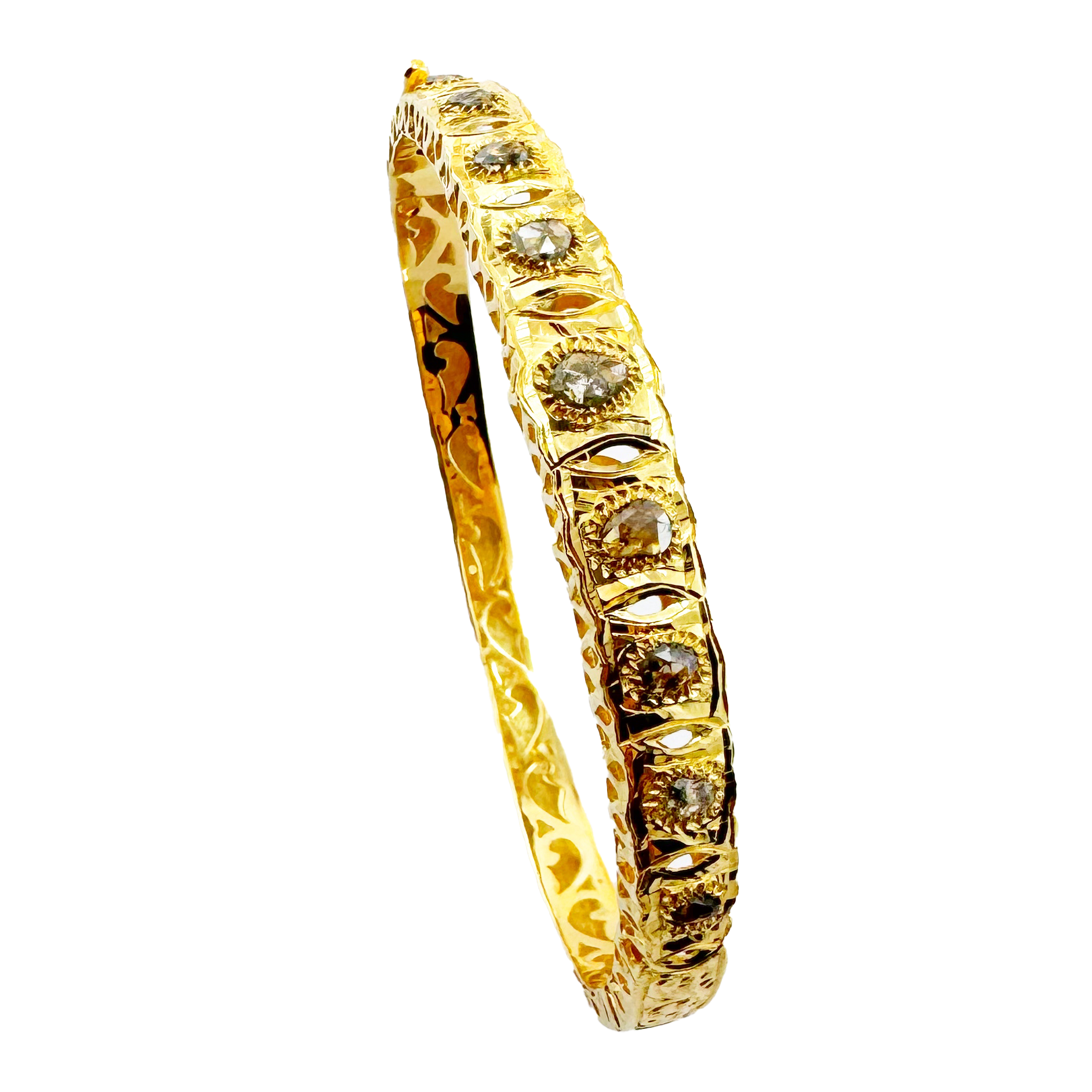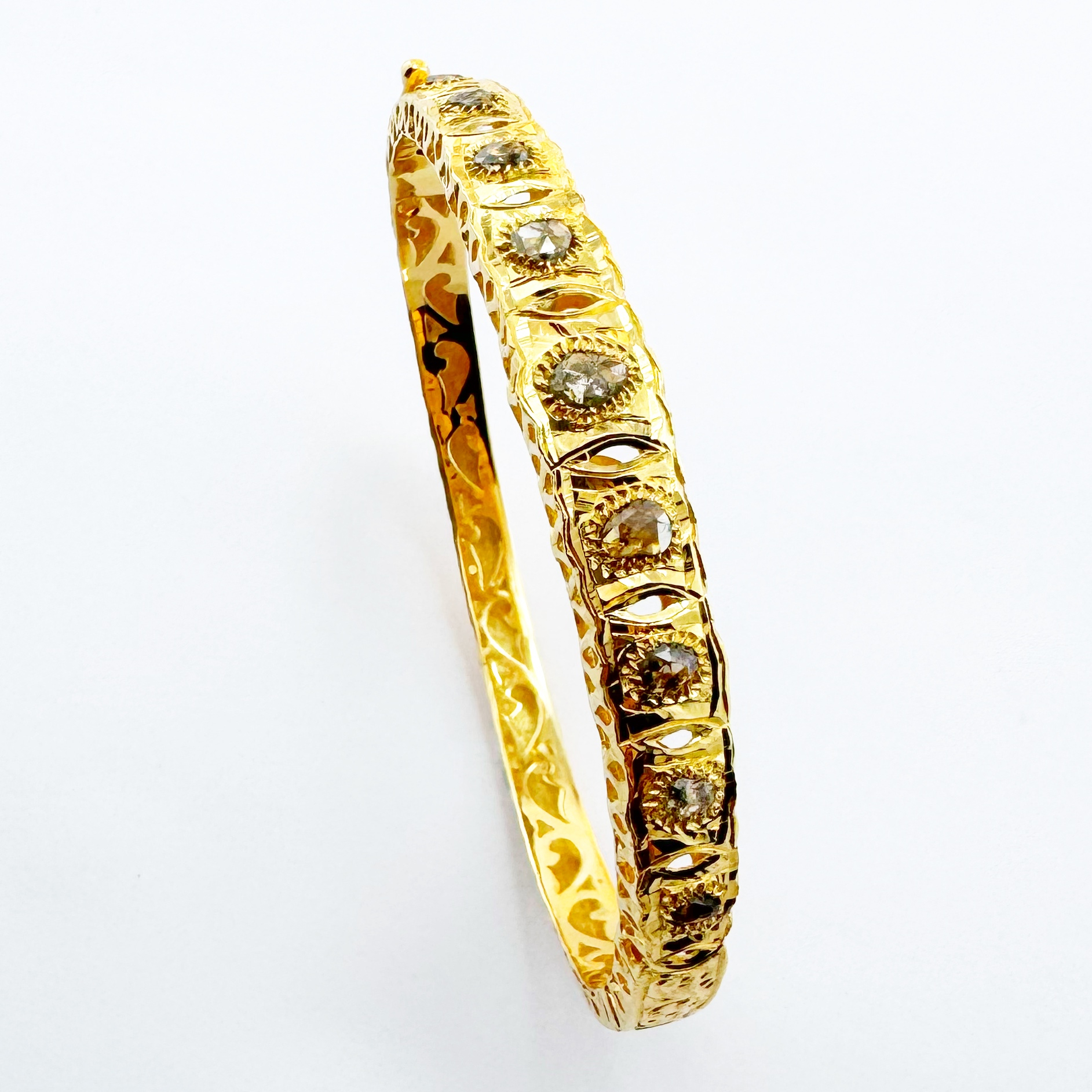 Bracelet en Or 18 carats antique est orné de rosaces exquisément serties, mêlant une beauté traditionnelle à une touche de sophistication moderne. Son design raffiné et sa finition brillante en font un bijou essentiel pour toutes les occasions.