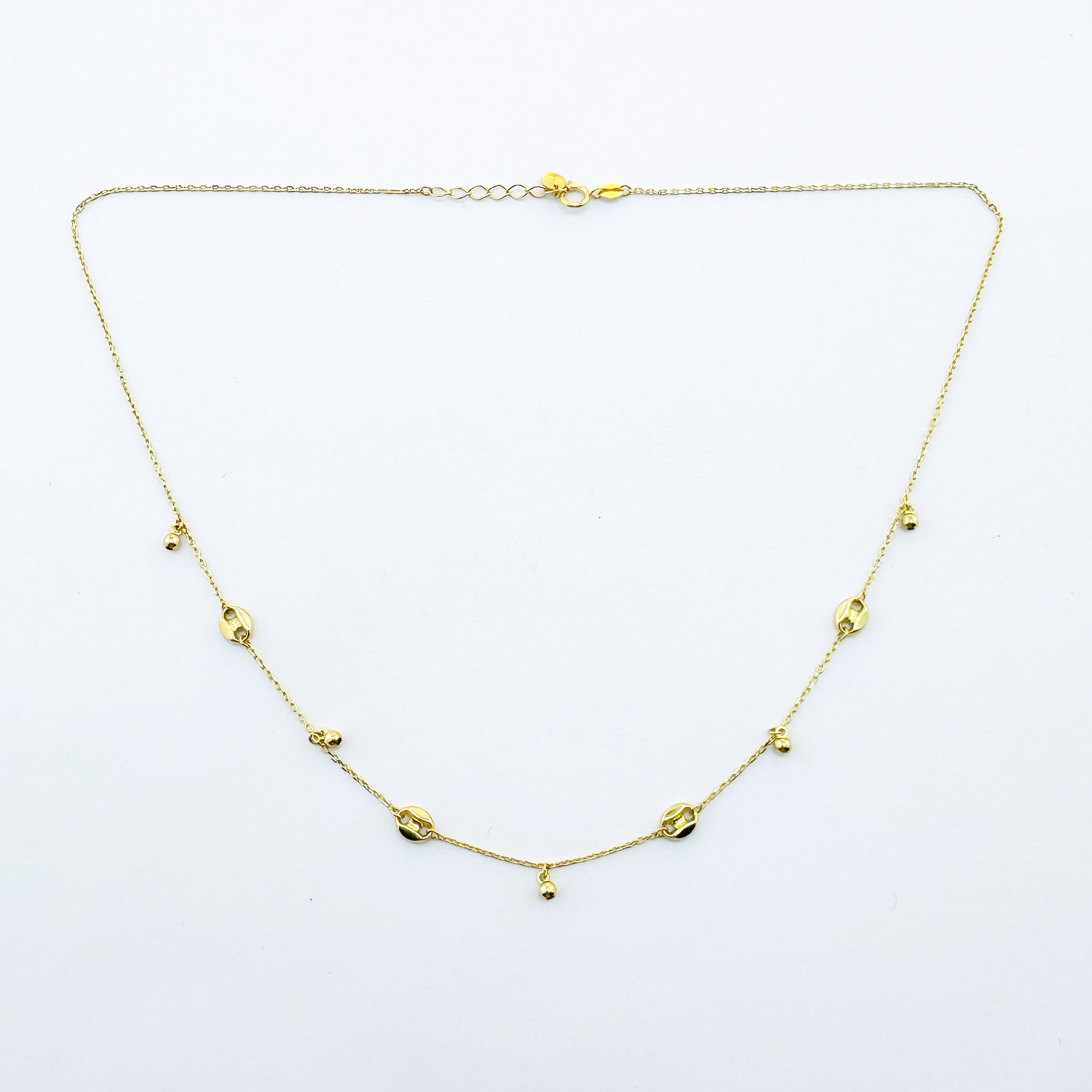 Offrez-vous ce beau cadeau collier en or jaune 18 carats au design raffiné, sublimé par des pendentifs en forme de goutte d’eau et de graines de cafés scintillante. Un bijou féminin et intemporel, idéal comme cadeau ou pour vos grandes occasions. Disponible en ligne avec livraison rapide au Maroc : Casablanca, Rabat, Marrakech, Tanger et toutes d'autres villes.