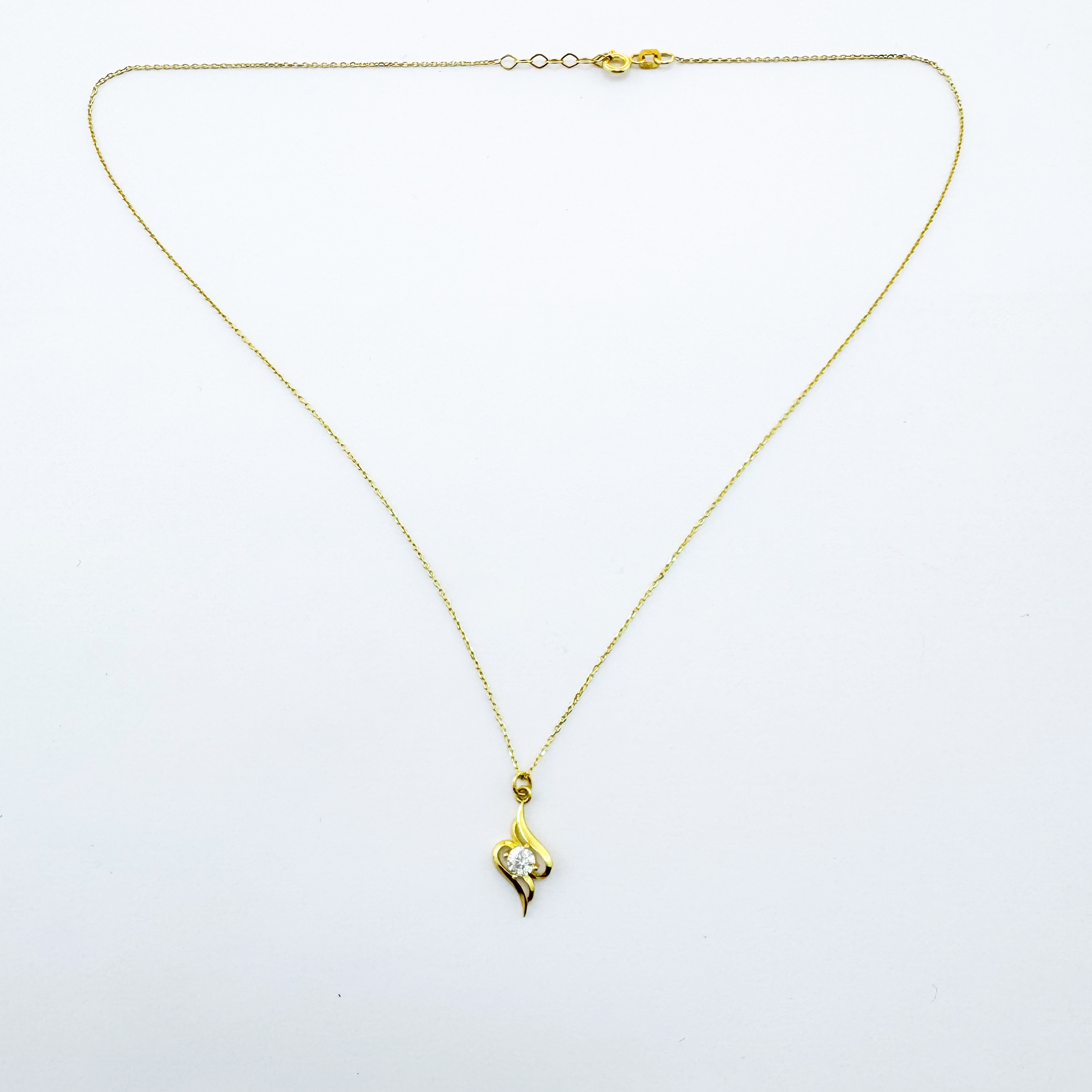 Collier moderne pour femme en Or jaune 18 carats, une pièce joaillière au design évocateur et profondément symbolique. Son pendentif en forme de flamme délicate incarne à la fois la passion, la lumière intérieure et la force féminine. La chaîne en or 750/1000, fine et résistante, apporte une touche de légèreté précieuse, tandis que le fermoir sécurisé assure un port confortable et durable. C’est un bijou qui traverse les tendances.