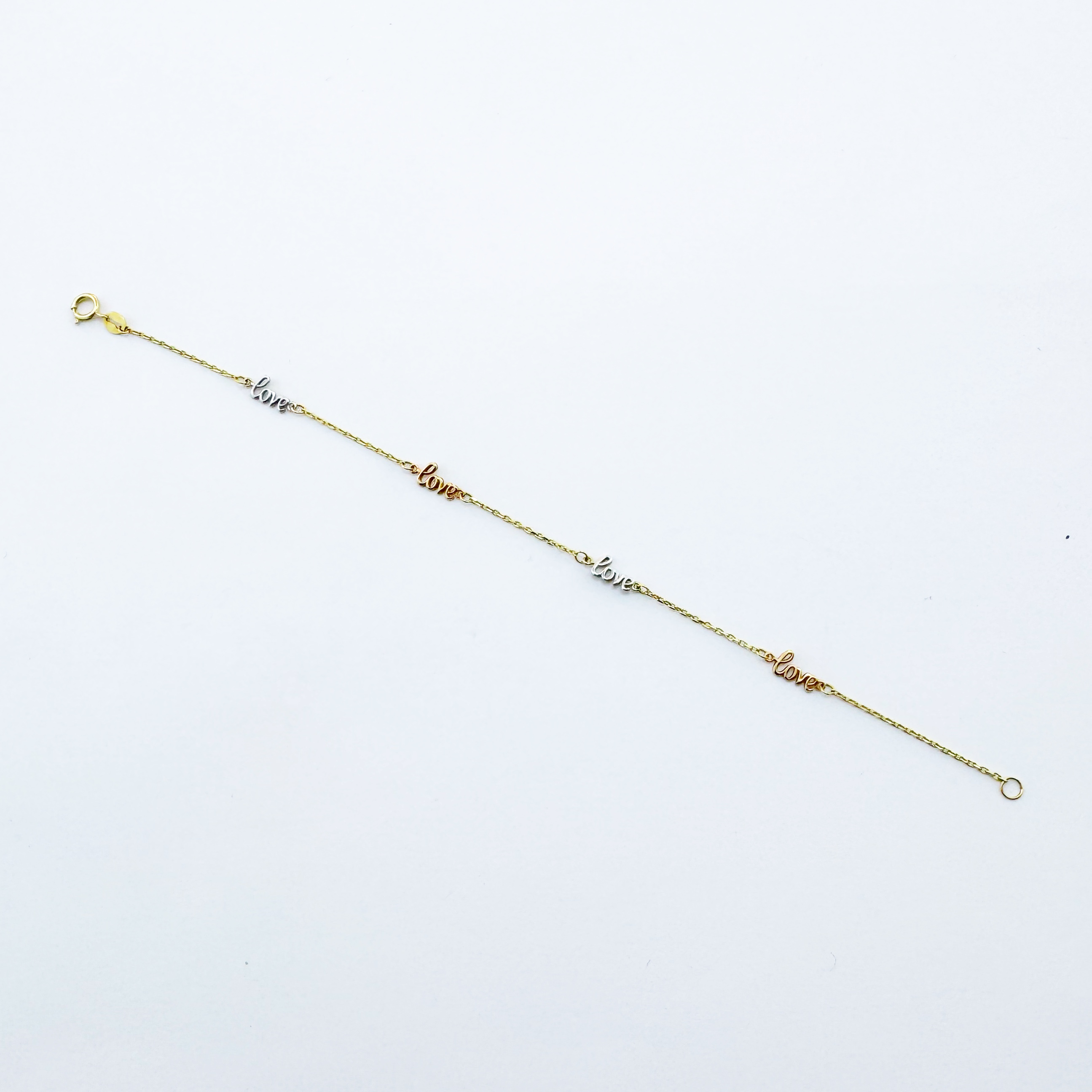 Chaîne fine en or : un bijou discret et élégant qui sublime toutes les carnations, 4 breloques “love” stylisées : alternance de tons chauds et froids, pour une touche chic et moderne, Fermoir anneau ressort sécurisé : pour un maintien parfait tout au long de la journée. Ce bracelet célèbre l’amour sous toutes ses formes : amour de soi, amour romantique, amour familial ou amitié sincère. Chaque mot “love” qui s’étend le long de la chaîne devient une affirmation personnelle, un souvenir précieux, ou une promesse silencieuse. Un bijou qui fait du bien à l’âme, autant qu’il embellit le corps.
