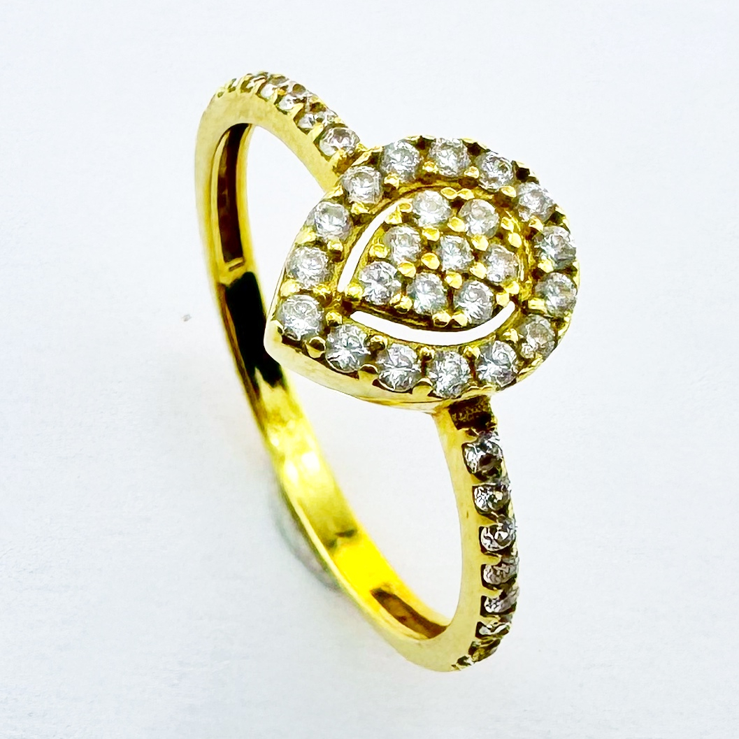 Bague poire de mariage en or jaune 18 carats, ornée de diamants scintillants, incarne une élégance éternelle.
