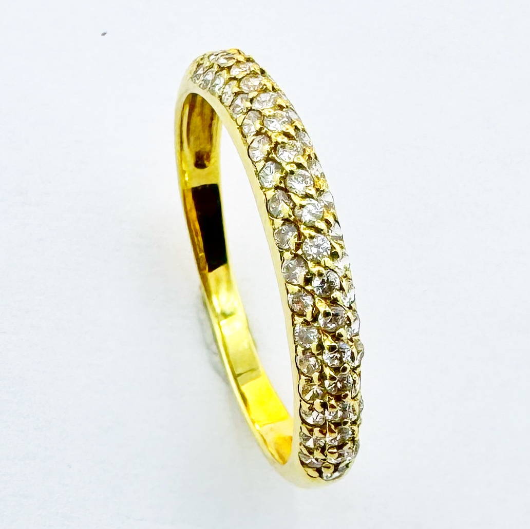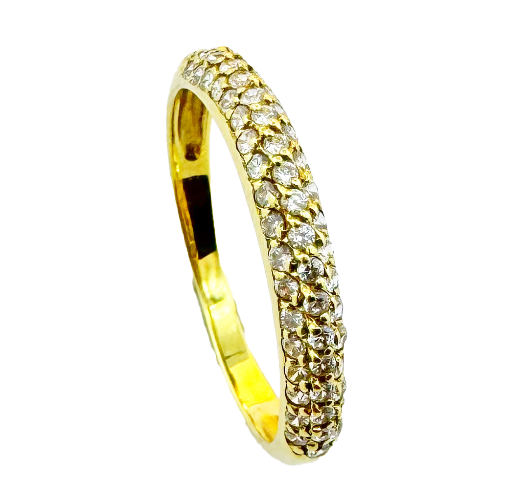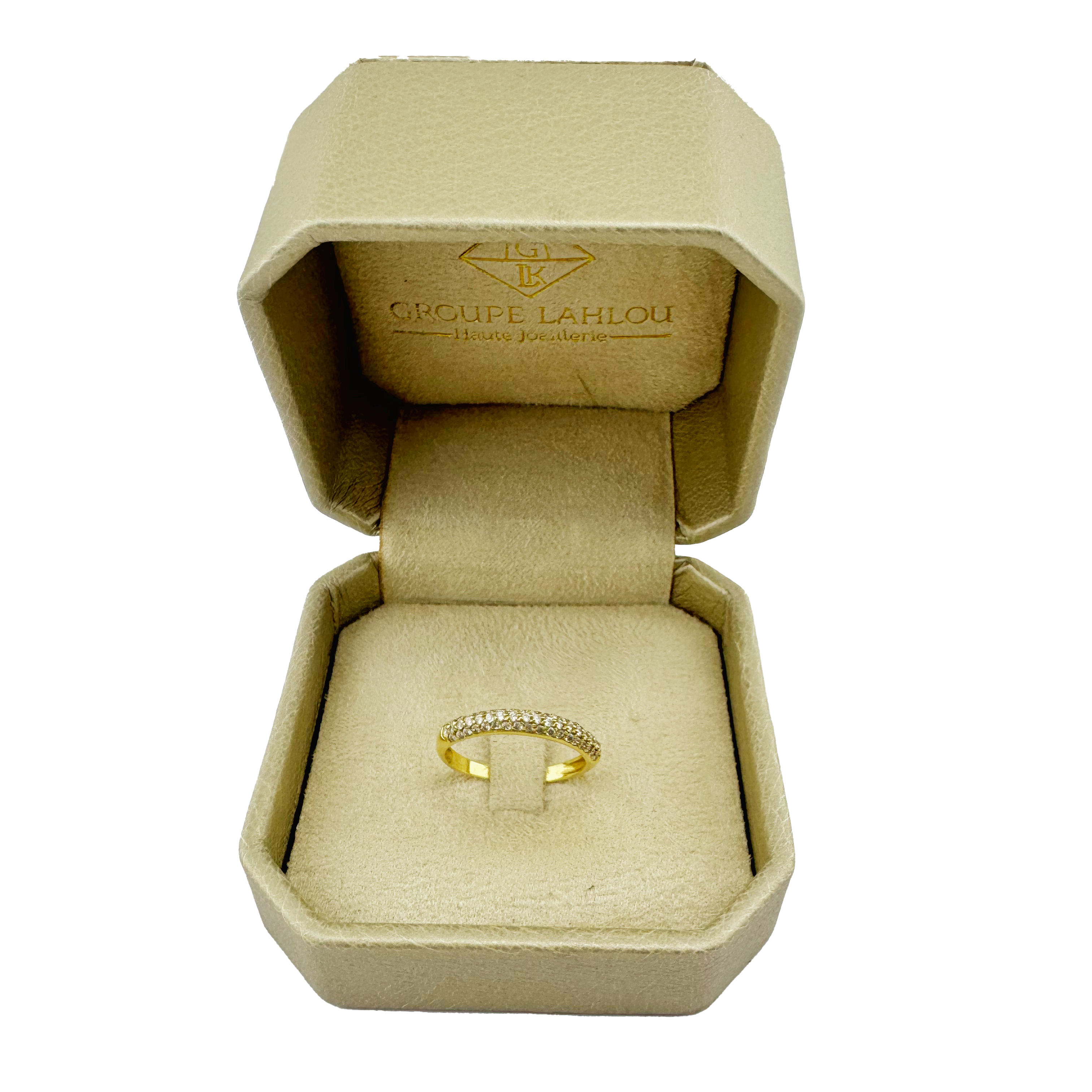 Alliance de mariage en or jaune 18K, ornée d’un pavage de diamants scintillants pour une élégance intemporelle. Son design raffiné en fait un choix idéal pour un mariage, un engagement. Un bijou d’exception pour symboliser un amour éternel. Luxe, éclat et raffinement au rendez-vous.