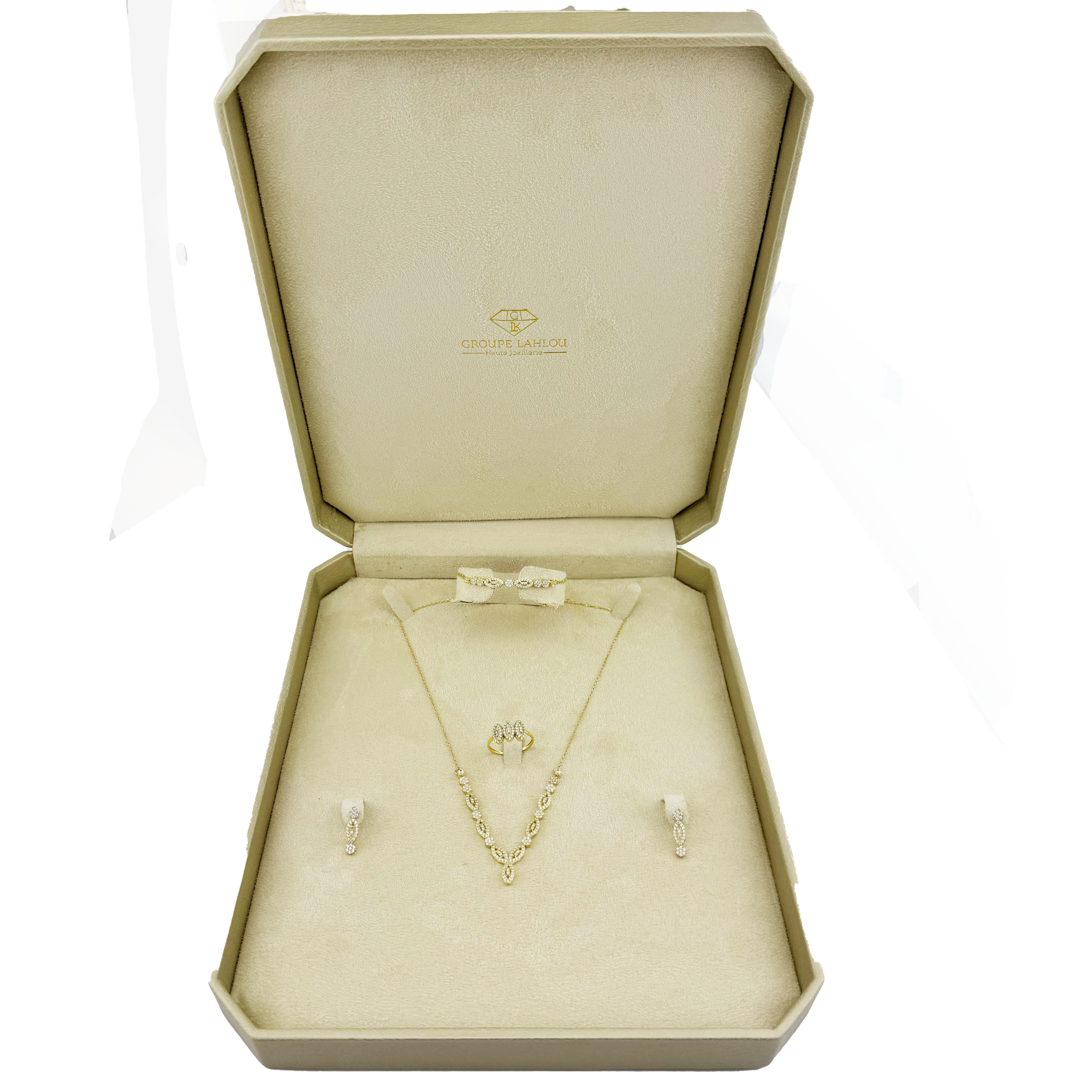 Découvrez ce charme naturel et lumineux de la parure Feuillage d’Or et diamants, une création en or jaune 18 carats sublimée par des diamants ronds pavés, soigneusement disposés en motifs de feuilles. Cette parure est conçue avec précision dans nos ateliers au Maroc, alliant tradition artisanale et design contemporain. Parfaite pour les mariées modernes ou comme cadeau de prestige