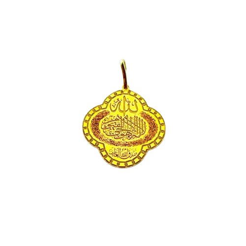 Ce pendentif pour bébé en or jaune 18 carats est une pièce de joaillerie islamique d’une grande valeur spirituelle et esthétique, façonnée avec soin pour célébrer les premiers instants de la vie.